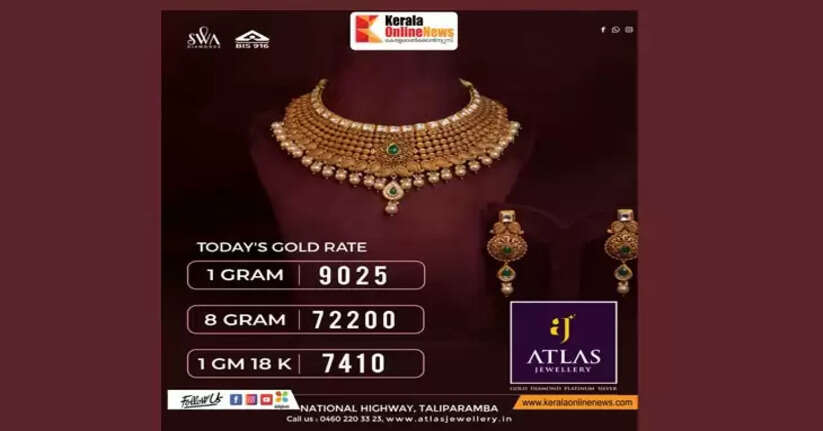 ഒരു ഗ്രാം സ്വർണത്തിന് 250 രൂപയുടെ വർധനവാണ് ഇന്ന് ഉണ്ടായിരിക്കുന്നത്. 9025 രൂപയാണ് ഒരു ഗ്രാം സ്വർണത്തിന്റെ ഇന്നത്തെ വില. അന്താരാഷ്ട്ര വിപണിയിലെ സ്വർണ വില വർധനവ്, ഡോളറിൻ്റെ മൂല്യത്തിലുള്ള വ്യതിയാനം, പണപ്പെരുപ്പ ആശങ്കകൾ തുടങ്ങിയവയാണ് സ്വർണവിലയിൽ മാറ്റം വരാനുള്ള പ്രധാന കാരണങ്ങൾ.