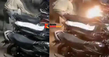 tRootC1469263">സംഭവത്തിന്റെ സിസിടിവി ദൃശ്യങ്ങള് പുറത്തുവന്നു. താമസക്കാര് പരാതി നല്കിയതിന് തൊട്ടുപിന്നാലെ ഇയാളെ പോലീസ് അറസ്റ്റ് ചെയ്തു. പാര്ക്ക് ചെയ്തിരിക്കുന്ന ഇരുചക്രവാഹനങ്ങള്ക്കടുത്തെത്തി യുവാവ് പെട്രോൾ പോലെ എന്തോ ദ്രാവകം ഒഴിക്കുന്നതും തുടർന്ന് തീകൊളുത്തുന്നതും സിസിടിവി ദൃശ്യങ്ങളിൽ കാണാം.