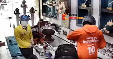 ലഖ്നോ: ഉത്തർപ്രദേശിലെ ജ്വല്ലറിയിൽ നിന്നും സ്വിഗ്ഗി, ബ്ലിങ്കിറ്റ് ഡെലിവറി ഏജൻറുമാരുടെ വേഷത്തിലെത്തിയ മോഷ്ടാക്കൾ പട്ടാപ്പകൽ ആഭരണങ്ങൾ കൊള്ളയടിച്ചു. ഇപ്പോൾ ഇതിൻറെ സി.സി.ടി.വി വിഡിയോ സമൂഹ മാധ്യമങ്ങളിൽ വൈറലാണ്. കടയിലെ ജീവക്കാരൻ നോക്കി നിൽക്കെയാണ് ഡെലിവറി ഏജൻറുമാരുടെ വേഷത്തിലെത്തിയ മോഷ്ടാക്കൾ ആഭരണങ്ങൾ മോഷ്ടിക്കുന്നത്. ഇതിനിടെ ഇവർ പരസ്പരം സംസാരിക്കുന്നതും ജീവനക്കാരനെ തല്ലുന്നതും ദൃശ്യങ്ങളിൽ കാണാം.