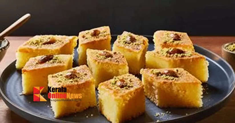 ഓവൻ 180 ഡിഗ്രി സെൽഷ്യസിൽ ചൂടാക്കുക. ഒരു ബൗളിൽ റവയും നെയ്യും യോജിപ്പിക്കുക. പാലും പഞ്ചസാരയും ചൂടാക്കി, അതിലേക്ക് ഒഴിച്ച് യോജിപ്പിക്കുക.