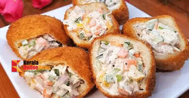 മൂന്നു കഷ്ണം ബ്രെഡ് ഒരുമിച്ചുവെച്ച് ഒരു അടപ്പ് ഉപയോഗിച്ച് വട്ടത്തിൽ മുറിച്ചെടുക്കുക. മുറിച്ചു മാറ്റിയ ബ്രെഡിന്റെ അറ്റം മിക്സിയിൽ പൊടിച്ച് ഡ്രൈ റോസ്റ്റ് ചെയ്ത് ബ്രെഡ് ക്രംബ്സ് ആക്കുക. ഇനി രണ്ട് ബ്രെഡിന്റെ വട്ടം ഒരുമിച്ചുവെച്ച് അമർത്തി അടിച്ച മുട്ടയിലോ കോൺ ഫ്ലോർ ബാറ്ററിലോ മുക്കി ബ്രെഡ് ക്രംബ്സിൽ കോട്ട് ചെയ്ത് മീഡിയം ചൂടുള്ള എണ്ണയിൽ രണ്ടുവശവും നന്നായി വറുത്ത് ഗോൾഡൻ ബ്രൗൺ ആകുമ്പോൾ കോരിമാറ്റുക.
