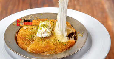 ●തയാറാക്കിയ കുനാഫയിൽ സിറപ്പ് ഒഴിച്ച് പിസ്ത കൊണ്ട് അലങ്കരിച്ച് വിളമ്പാം.