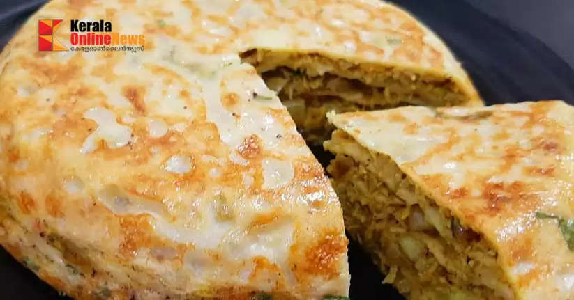 മുട്ടയുടെ രണ്ട് ലെയര് ആണ് വച്ചത് , ബാക്കിയുള്ളത് ചിക്കന് ലെയര് ആണ്. അവസാന ലെയര് ദോശ ആയിരിക്കണം. ഇനി ബാക്കിയുള്ള മുട്ട മിശ്രിതം വശങ്ങളിലേക്കും മുകളിലേക്കും ഒഴിക്കുക, വശങ്ങളില് അല്പം എണ്ണ ഒഴിക്കുക, ഓരോ വശത്തും 8-10 മിനിറ്റ് കുറഞ്ഞ തീയില് വേവിക്കുക.