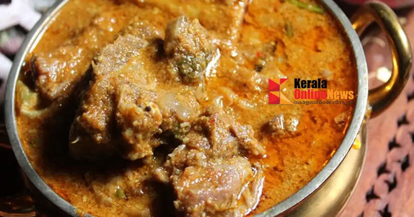 പെരും ജീരകം മസാലപ്പൊടി എന്നിവ മയത്തില് അരച്ചെടുക്കുക. നെയ്യും എണ്ണയും മൂപ്പിച്ച് യോജിപ്പിച്ച് കറിവേപ്പില വറുത്ത് കോരുക. ബാക്കി എണ്ണയില് അരച്ചുവെച്ചിരിക്കുന്ന മിശ്രിതം ചേര്ത്ത് മൂപ്പിച്ചതിന് ശേഷം തവാള ചേര്ക്കുക. നന്നായി വഴറ്റിയതിന് ശേഷം നേരത്തെ വറ്റിച്ചുവെച്ചിരിക്കുന്ന മിശ്രിതം ചേര്ത്ത് വേവിക്കുക. തിളയ്ക്കുമ്പോള് ഇറച്ചി കഷ്ണങ്ങള് ചേര്ത്ത് വീണ്ടും തിളപ്പിച്ച് കറിവേപ്പിലയും കുരുമുളക് പൊടിയും ചേര്ത്തതിന് ശേഷം വാങ്ങാം.