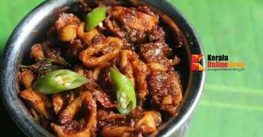 കണവ ഉപ്പും മഞ്ഞൾപ്പൊടിയും ചേർത്ത് വേവിക്കുക. ഒരു ഉരുളി അടുപ്പിൽ വച്ചു ചൂടായി കഴിയുമ്പോൾ വെളിച്ചെണ്ണ ഒഴിച്ചു കടുക് പൊട്ടിക്കുക. അതിനുശേഷം തേങ്ങാക്കൊത്ത് വഴറ്റിയെടുക്കുക. പിന്നീട് ചെറിയ ഉള്ളി, വെളുത്തുള്ളി, ഉള്ളി, ഇഞ്ചി, കറിവേപ്പില എന്നിവ നന്നായി വഴറ്റിയെടുക്കുക.