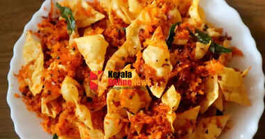 പാനിൽ എണ്ണ ചൂടാക്കി പപ്പടം വറുത്ത് എടുത്ത് ചെറുതായി പൊടിച്ച് വക്കുക.