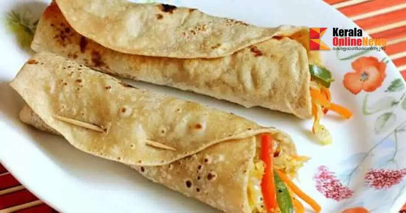 തയാറാക്കി വച്ചിരിക്കുന്ന കാബേജ്, സവാള, ചിക്കന് ഫ്രൈ ഇതൊക്കെ ചപ്പാത്തിയുടെ മുകളില് കുറച്ചു കുറച്ചായി ഇട്ടു കൊടുക്കുക.ശേഷം ചപ്പാത്തി റോള് ചെയ്തെടുക്കുക.