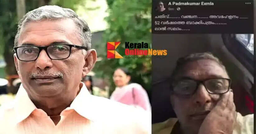 പത്തനംതിട്ട: പ്രായപരിധിക്ക് കാത്തു നിൽക്കുന്നില്ല, 66 ൽ തന്നെ എല്ലാം ത്യജിക്കുകയാണെന്നും തെരഞ്ഞെടുക്കപ്പെട്ട എല്ലാ സ്ഥാനങ്ങളിൽ നിന്നും ഒഴിയുമെന്നും പദ്മകുമാർ മാധ്യമങ്ങളോടു പ്രതികരിച്ചു.“ചതിവ്, വഞ്ചന, അവഹേളനം – 52 വർഷത്തെ ബാക്കിപത്രം ലാൽ സലാം’ എന്നായിരുന്നു പദ്മകുമാറിന്റെ ഫേസ്ബുക്ക് പോസ്റ്റ്. പ്രൊഫൈൽ ചിത്രവും മാറ്റി. എന്നാൽ പോസ്റ്റ് ചർച്ചയായതോടെ അദ്ദേഹം പിൻവലിച്ചു.
