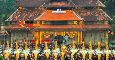 തെക്കേഗോപുര നടയ്ക്ക് അഭിമുഖമെത്തി നടുവില് തിടമ്പേറ്റിയ ഗജവീരനും ഇടംവലം എട്ട് ആനകളും നിരന്നു നിന്നു. ഗജ സൗന്ദര്യത്തില് മയങ്ങിയ പൂരപ്രേമികള് ആരവം മുഴക്കി.