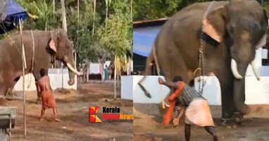 തൃശൂരില് ഇടഞ്ഞ ആനയെ തളയ്ക്കാന് പാപ്പാന്മാര് കല്ലെറിഞ്ഞു; ദൃശ്യങ്ങള് പുറത്ത്