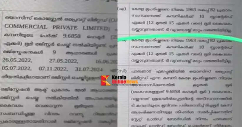 tRootC1469263">1963-ലെ ഭൂപരിഷ്കരണ നിയമപ്രകാരം 15 ഏക്കര്വരെയാണ് പരമാവധി കൈവശം വെക്കാവുന്ന ഭൂമി. 8.92 ഏക്കര് ഭൂമിയാണ് കമ്പനി അധികമായി കൈവശംവെച്ചിരിക്കുന്നത്. പ്രതിപക്ഷ എം.എല്.എമാരായ അന്വര് സാദത്ത്, എം. വിന്സന്റ്, സി.ആര്. മഹേഷ് എന്നിവരുടെ ചോദ്യത്തിന് റവന്യു മന്ത്രി കെ. രാജന് നല്കിയ നിയമസഭയില് നല്കിയ നിയമസഭയില് നല്കിയ മറുപടിയിലാണ് ഇക്കാര്യമുള്ളത്.