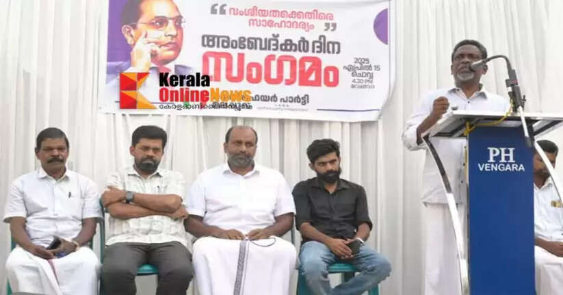 വേങ്ങര: രാജ്യത്തിന്റെ അടിസ്ഥാന മൂല്യങ്ങളെ തച്ചുതകർത്തുകൊണ്ട് വംശീയവാഴ്ച്ച നടത്തുന്ന ദുശ്ശക്തികളെ ഭരണഘടന വിഭാവനം ചെയ്യുന്ന സഹോദര്യമെന്ന ആശയം കൊണ്ട് പൊതുസമൂഹം പ്രതിരോധിക്കണമെന്ന് വെൽഫെയർ പാർട്ടി സംസ്ഥാന ജനറൽ സെക്രട്ടറി സുരേന്ദ്രൻ കരിപ്പുഴ പറഞ്ഞു. വംശീയതക്കെതിരെ സാഹോദര്യം എന്നീ ശീർഷകത്തിൽ വേങ്ങരയിൽ വെൽഫെയർ പാർട്ടി സംഘടിപ്പിച്ച അംബേദ്കർ ദിന സംഗമം ഉദ്ഘാടനം ചെയ്ത് സംസാരിക്കുകയായിരുന്നു അദ്ദേഹം.