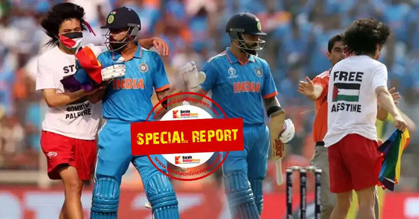 tRootC1469263">സോഷ്യല് മീഡയയില് പ്രചരിച്ച ഫോട്ടോകളിലാണ് ഇയാള് വിരാട് കോഹ്ലിയെ സമീപിക്കുന്നതായി കാണിക്കുന്നത്. സെക്യൂരിറ്റി ഇയാളെ പിന്നീട് പുറത്തേക്ക് കൊണ്ടുപോയി. ഫൈനലിനിടെ നടത്തിയ പ്രതിഷേധം ലോകമെങ്ങും ശ്രദ്ധപിടിച്ചുപറ്റുന്നതായി. പ്രധാനമന്ത്രി മത്സരം കാണാനെത്തുമെന്ന് അഭ്യൂഹമുണ്ടായിരുന്നെങ്കിലും കളിക്കാര്ക്ക് വിജയ സന്ദേശം നല്കുക മാത്രമാണ് ചെയ്തത്.