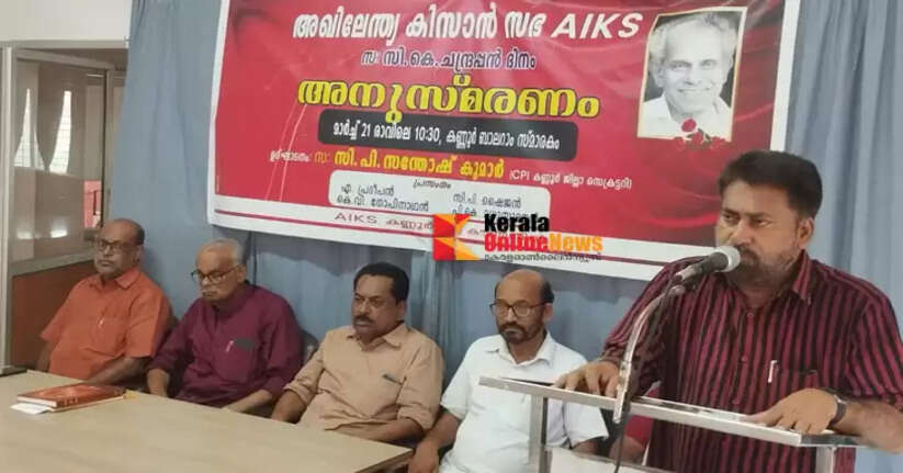 tRootC1469263">അഖിലേന്ത്യ കിസാൻ സഭ ജില്ലാ കൗൺസിലിൻ്റെ ആഭിമുഖ്യത്തിൽ നടന്ന സി കെ ചന്ദ്രപ്പൻ അനുസ്മരണ സമ്മേളനം ഉദ്ഘാടനം ചെയ്ത് സംസാരിക്കുകയായിരുന്നു അദ്ദേഹം. കമ്യൂണിസ്റ്റ് പാർട്ടിയുടെ ആശയവും രാഷ്ട്രീയവും താഴെ തട്ടിലെത്തിക്കണം എന്നാലെ പാർട്ടി മുന്നേറു എന്ന ചിന്ത തന്നെ അദ്ദേഹം സംഘടനയോട് എത്ര മാത്രം ജാഗ്രത പുലർത്തിയെന്നത് വ്യക്തമാണ്.