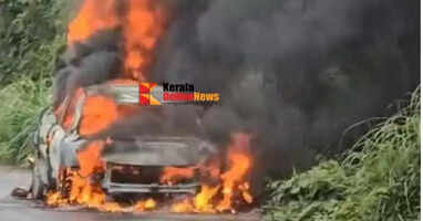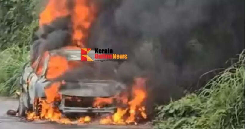 കാർ പൂർണ്ണമായി കത്തിനശിച്ചു.