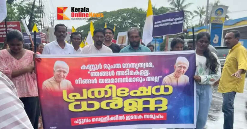 വെള്ളിക്കീലിലെ ഭൂമി ദാനത്തിൽ പ്രതിഷേധം : കണ്ണൂർ ബിഷപ്പ് ഹൗസിന് മുന്നിൽ വിശ്വാസികൾ പ്രതിഷേധ ധർണ നടത്തി