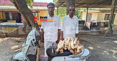 tRootC1469263">13 കിലോഗ്രാം ചന്ദനമുട്ടികളും 6.5 കിലോഗ്രാം ചെത്ത്പൂളുകളും സ്ക്കൂട്ടറില് കടക്കാന് ശ്രമിക്കുന്നതിനിടെയാണ് പാവന്നൂര്കടവില് വെച്ച് ഇവരെ പിടികൂടിയത്. പ്രതികളെ കണ്ണൂര് ജുഡീഷ്യല് ഒന്നാംക്ലാസ് കോടതി (മൂന്ന്) മുൻപാകെ ഹാജരാക്കി റിമാൻഡ് ചെയ്തു.