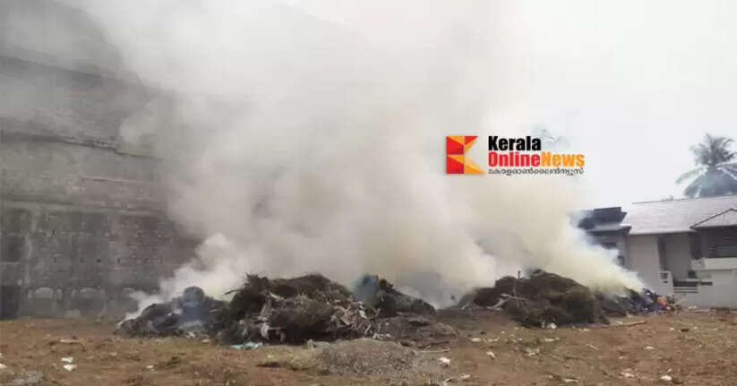 സ്വകാര്യ വ്യക്തി മാലിന്യം കൂട്ടിയിട്ട് കത്തിച്ചു ; വിഷ പുകയിൽ മുങ്ങി കൂത്തുപറമ്പ് നഗരം