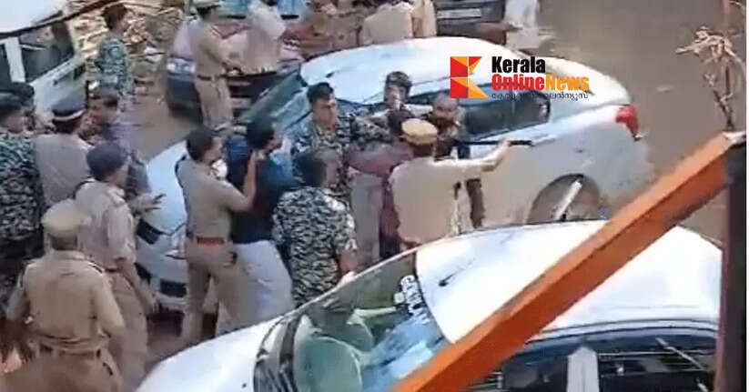 മന്ത്രിയുടെ വാഹനത്തിന് മുൻപായുള്ള പൊലിസ് എസ് കോർട്ട് വാഹനവും മന്ത്രിയുടെ വാഹനവും പ്രതിഷേധക്കാർ തടഞ്ഞതോടെ അൽപനേരം റോഡിലായി. ഉടൻ പൊലിസുകാരി റങ്ങി സമരക്കാർക്കെതിരെ ലാത്തി വീശുകയും ബലപ്രയോഗത്തിലൂടെ മാറ്റാൻ ശ്രമിക്കുകയും ചെയ്തു. പിടി വലിക്കിടെയിൽ ഒരു പ്രവർത്തകൻ്റെ ഉടുമുണ്ട് ഉരിഞ്ഞു. കൂടുതൽ പൊലിസിറങ്ങിയാണ് മറ്റൊരു വാഹനത്തിൽ പ്രവർത്തകരെ ബലം പ്രയോഗിച്ചു മാറ്റിയത്. പത്തോളം പേരെയാണ് പൊലിസ് കസ്റ്റഡിയിലെടുത്തു നീക്കിയത്.