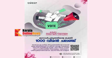 പാലക്കാട്: അന്താരാഷ്ട്ര വനിതാ ദിനത്തോടനുബന്ധിച്ച് സംസ്ഥാന തിരഞ്ഞെടുപ്പ് കമ്മീഷന് വനിതാ വോട്ടര്മാര്ക്കായി ' ജനാധിപത്യത്തിന്റെ ശക്തി 1000 വിമന് ചലഞ്ച് ' എന്ന പേരില് സെല്ഫി വീഡിയോ ചലഞ്ച് സംഘടിപ്പിക്കുന്നു. 'ഞാന് തീര്ച്ചയായും വോട്ട് ചെയ്യും നിങ്ങളോ' എന്ന് പറയുന്ന 5 സെക്കന്ഡില് താഴെ ദൈര്ഘ്യമുള്ള സെല്ഫി വീഡിയോ QR കോഡ് സ്കാന് ചെയ്ത് ഫെബ്രുവരി 25 ന് മുന്പായി അപ്ലോഡ് ചെയ്യുക. ഒറ്റക്കോ ഗ്രൂപ്പ് ആയോ ഈ ചലഞ്ചില് പങ്കുചേരാമെന്ന് ജില്ലാ കളക്ടര് അറിയിച്ചു.
