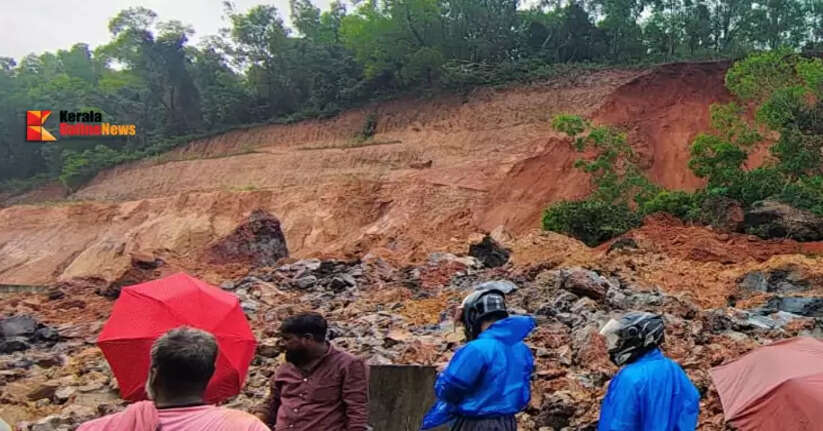 ചെറുവത്തൂരിലെ വീരമലക്കുന്ന് ദേശിയപാതയിലേക്ക് ഇടിഞ്ഞുവീണു