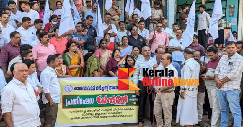 മാനന്തവാടി: തൊഴിൽ നികുതി വർദ്ധിപ്പിച്ചതിനെതിരെയും ഹരിത കർമ്മ സേനയുടെ സേവനം ആവശ്യമില്ലാത്ത വ്യാപാരികളിൽ നിന്ന് യൂസർഫീ പിരിക്കുന്നതിനെതിരെയും തദ്ദേശസ്വയംഭരണ സ്ഥാപനങ്ങളുടെ ചൂഷണങ്ങൾക്കുമെതിരെ മാനന്തവാടി മർച്ചന്റ്സ് അസോസിയേഷന്റെ ആഭിമുഖ്യത്തിൽ മാനന്തവാടി നഗരസഭയുടെ മുമ്പിൽ വ്യാപാരികൾ ധർണ്ണ നടത്തി. സമരം കേരള വ്യാപാരി വ്യവസായി ഏകോപന സമിതി ജില്ലാ ജനറൽ സെക്രട്ടറി കെ ഉസ്മാൻ ഉദ്ഘാടനം ചെയ്തു.